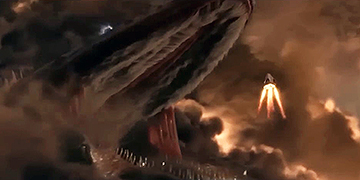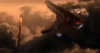 a whale and Godzilla]. The crew rushes to escape the planet before their